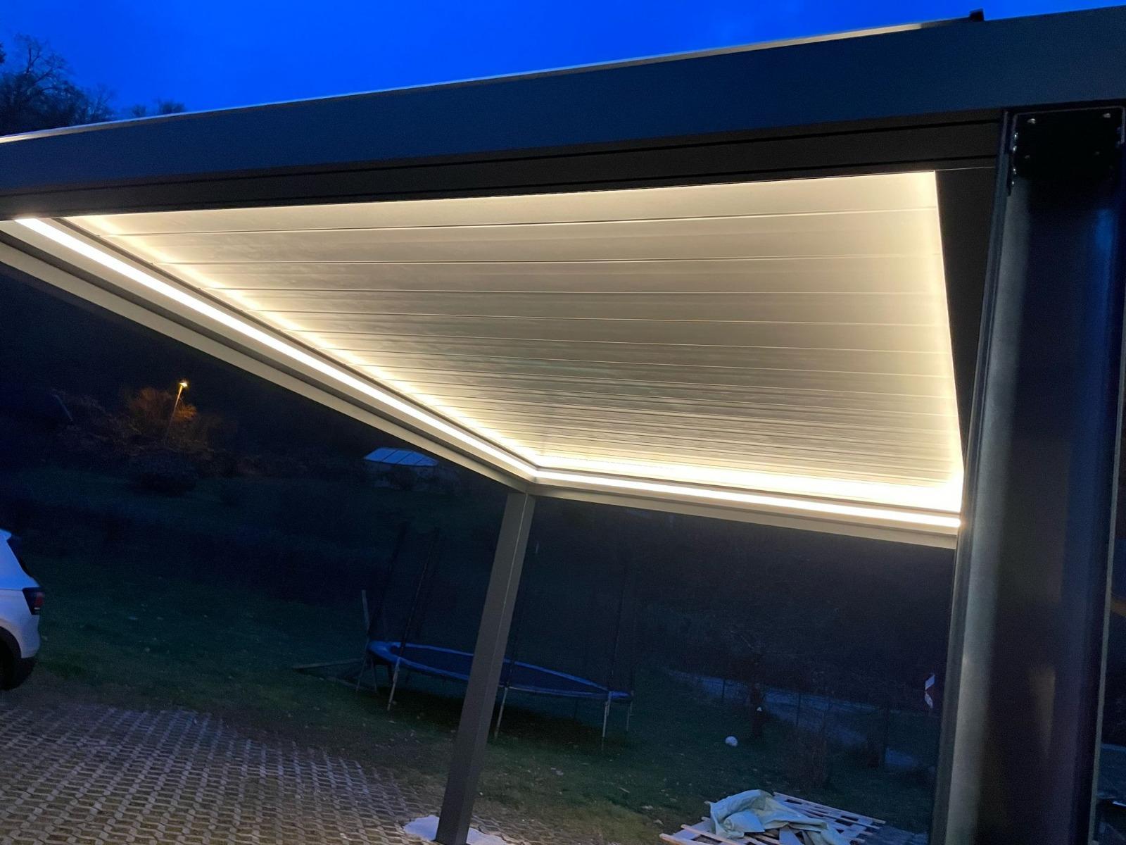 - Açılıb-bağlanan lamelli tavan: Lamelli tavan sistemi günəş işığını və hava axınını idarə etməyə imkan verir. Qapalı vəziyyətdə yağış və küləkdən qoruyur, açıq vəziyyətdə isə təbii hava və işıq təmin edir.