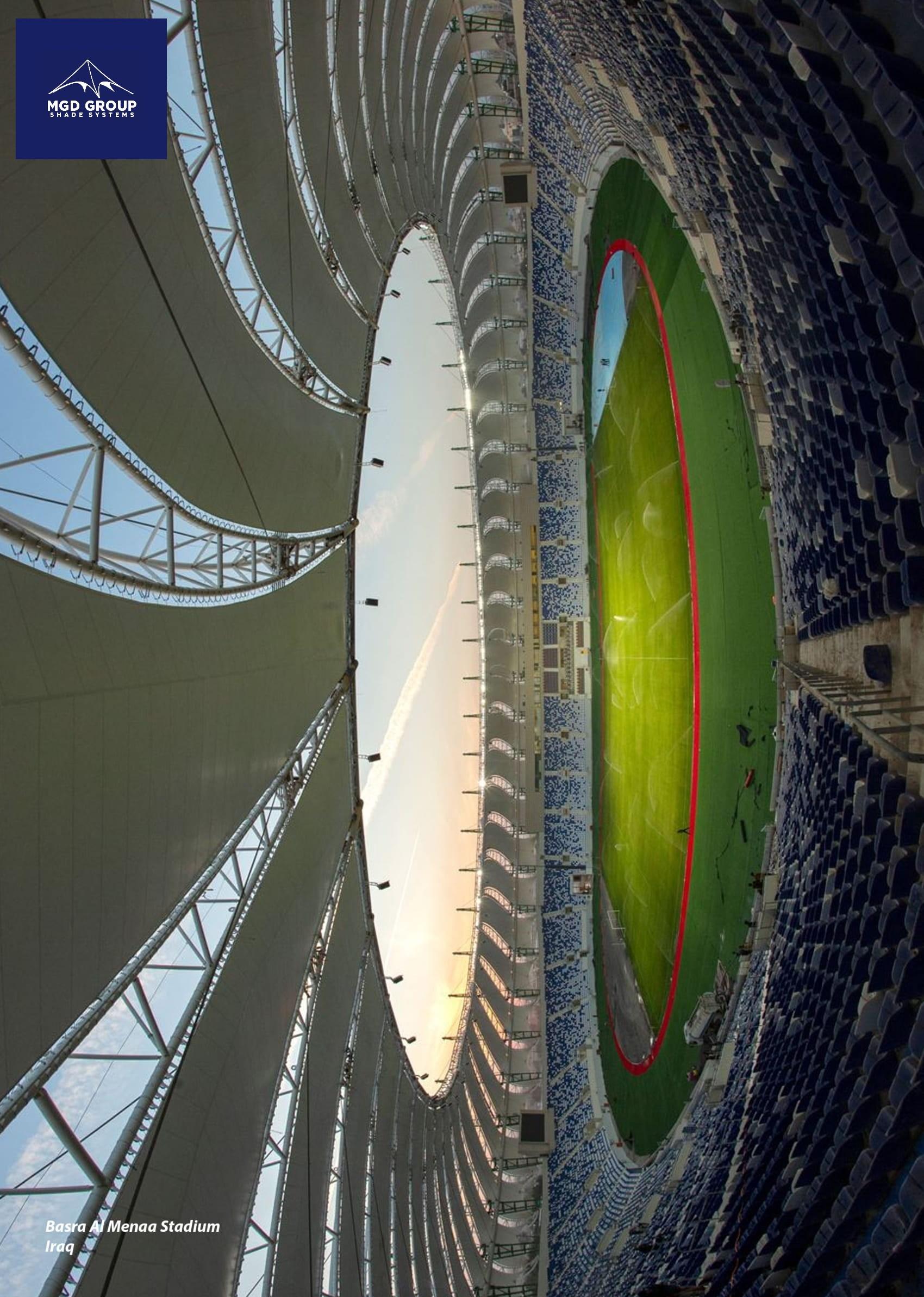 Sector: Sports FacilitiesYear: 2023Location: IraqConstruction Components: Roofing, Façade / Sun BreakerForm Type: Wave, Concave (inward-curved)Area: A > 35,000 m²System Type:Large-span structures, membrane-covered roofing system